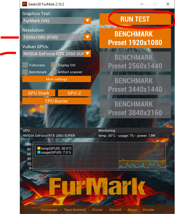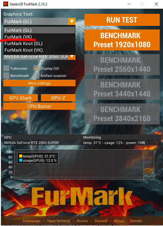 Graphics Test kısmından Furmark (VK) seçiyoruz