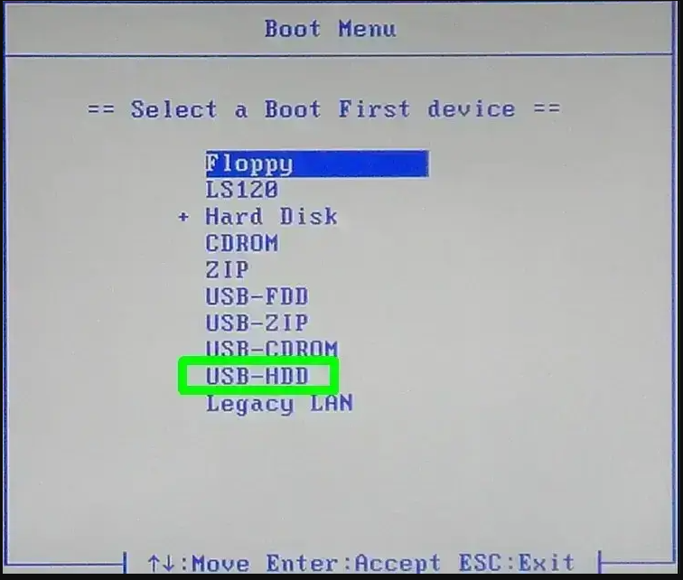 - Buradan USB beleği F5-F6 tuşuyla veya artı eksi (+ -) tuşuyla 1.sıraya getirin.