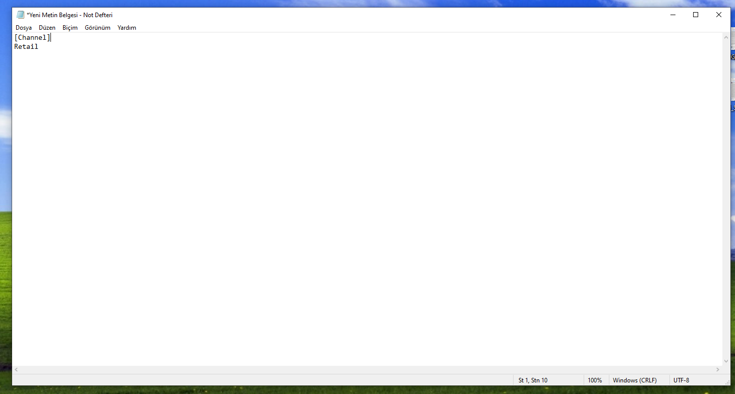 Yeni bir metin belgesi oluşturun ve aşağıdaki kodları içerisine yazın