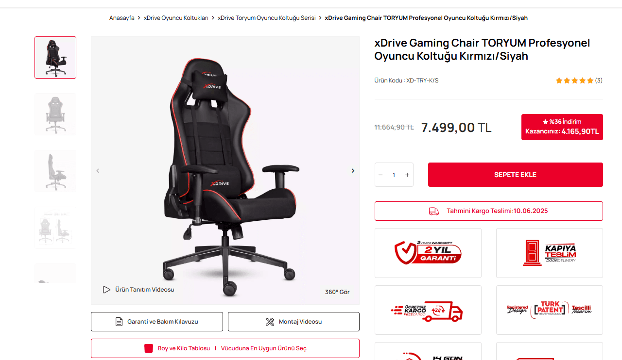 Ne işinize ne de oynadığınız oyuna odaklanabilirsiniz. Peki xDrive Toryum rahat mı ? Almayı düşünenler için hemen söyleyelim. Boy ve kilonuz xDrive Toryum için önerilen değerlerin üzerinde değilse size rahat bir oturma imkanı sunar. Çünkü malzeme kalitesi oldukça güzel ve yumuşak.