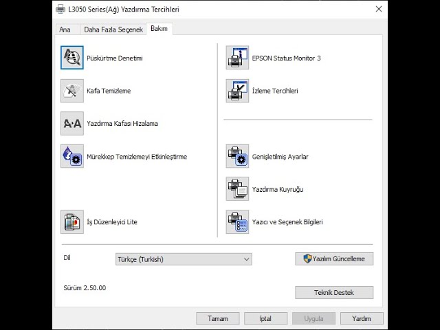Epson kafa temizleme işlemi için aşağıdaki adımları sırasıyla takip edin.